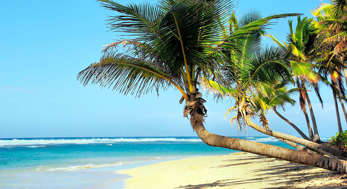 Its 8-miles of sand are talcum-soft and talcum-white, dotted with fat little palm trees, and the water is the palest shade of aquamarine.