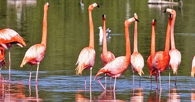 local wildlife and the islet plays host to many birds, including wild pink flamingos.